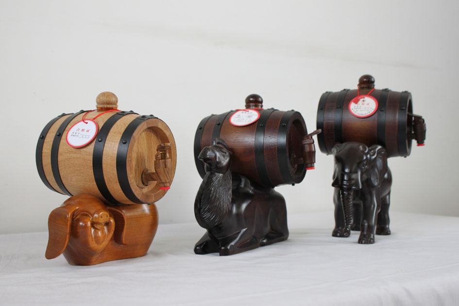 手工打造,不斷發展 把挑選的木材進行品質,我們只使用品質好的原材料進行裁切打磨,每一塊二木材必須要平整統一,這樣在材料無蠟拼接時才可以無縫隙。為了使產品在日后使用時更長久衛生,拼接成型的產品還要進行高溫預熱、殺菌、安裝端板等系列強化程序。至此,雛形產品便加工完成。為了使產品更加美觀牢靠,還要經過磨砂拋光、烘烤碳化、壓箍等工藝進行美化、增加強度的處理,經過的純手工處理后的酒桶才可以經得起歲月考驗。